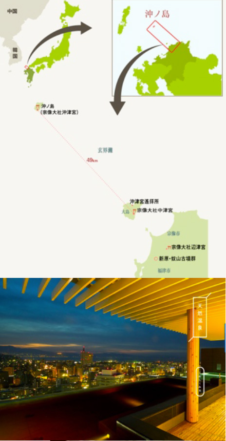 こが北部九州で交通安全の神様になっている「宗像大社」ですが、御神体は60キロほど沖合の沖の